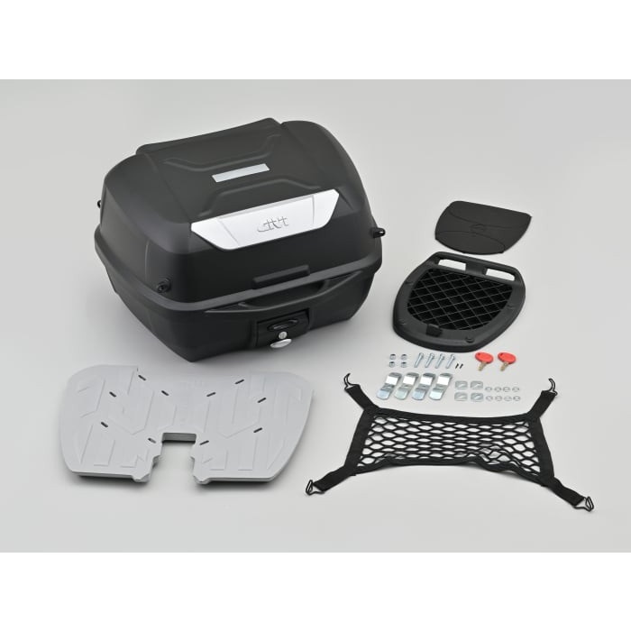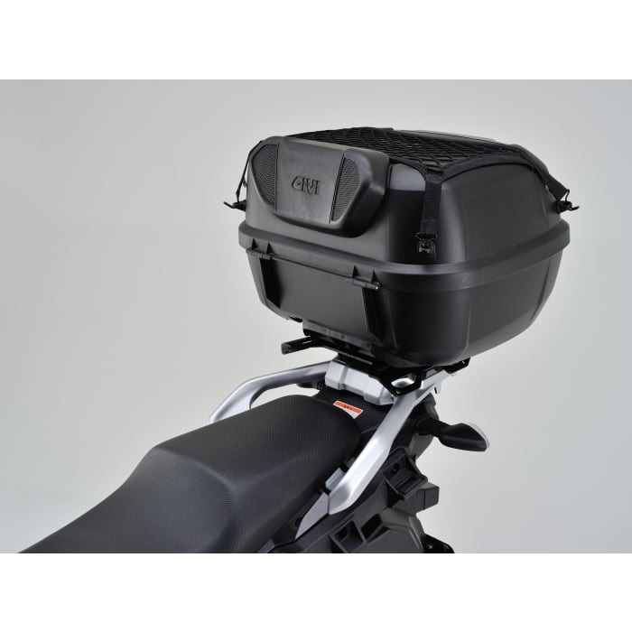 付属の汎用ベース(MP60N)を使用し純正や市販のキャリアが取り付けできるほか、GIVI製車種専用フィッティングと組み合わせて取り付けることも可能です。E43NTL-ADV はインナーボトムマット、バックレスト、ネット&フック標準装備。