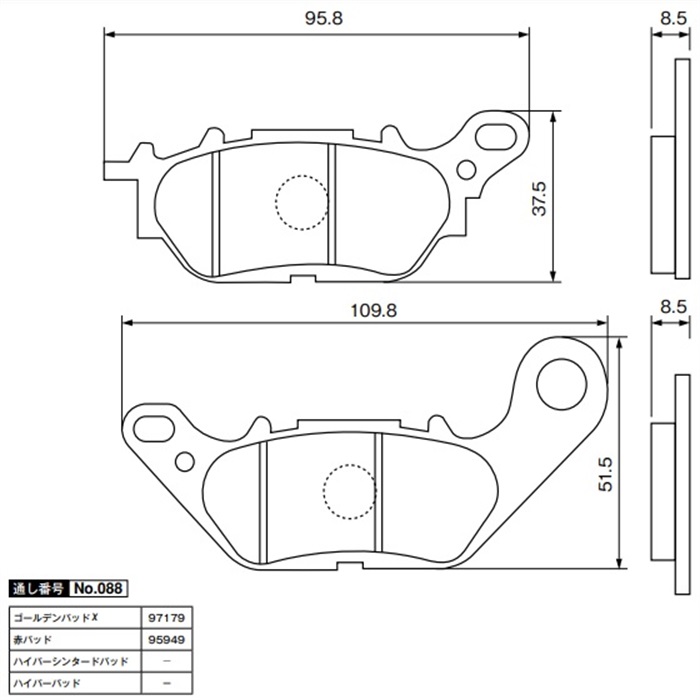 赤パッド No.088 NMAX155 17-22 / トリシティ155 ABS 16-23 / NMAX125 16-23 / トリシティ125 18-23等