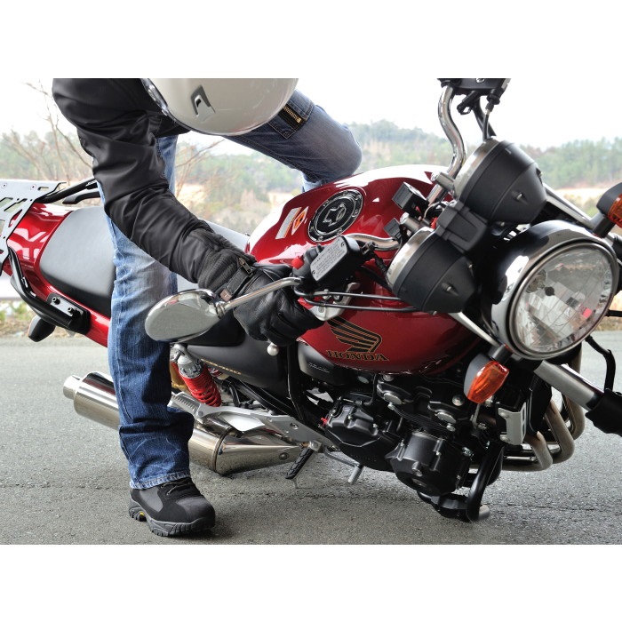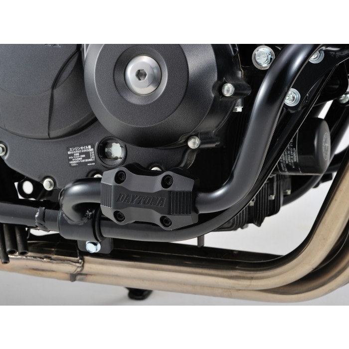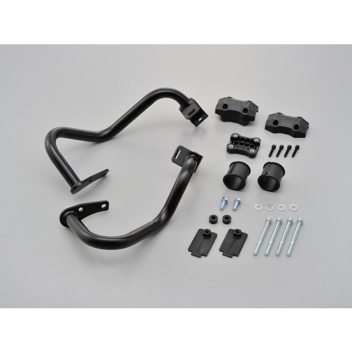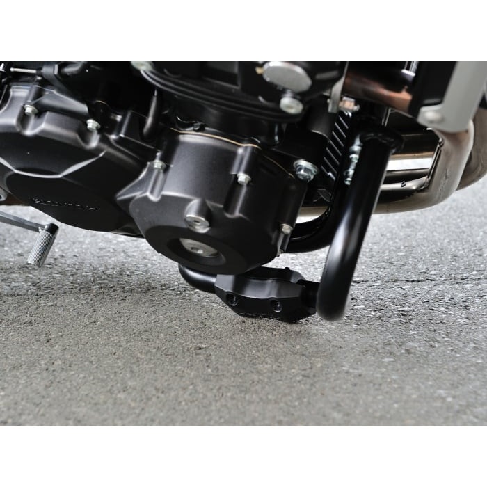 ゴムダンパー装備で、装着時にフレームに傷を与えない新設設計。ボルトオン装着可能なスチールパイプ製の強固なエンジンガードは、立ちゴケ等の軽度な転倒に対し、エンジンやカウルのダメージを軽減。ケース割れ等による走行不能を回避します。Φ25.4 (1インチ) アメリカンのハンドルと同径なので、アクションカメラなどハンドルにクランプする用品の装着も可能。付属の樹脂パッド (リダクションスライダー) は軽度なダメージを吸収し、摩耗時には交換可能です。不必要に目立たないマットブラック塗装済み。