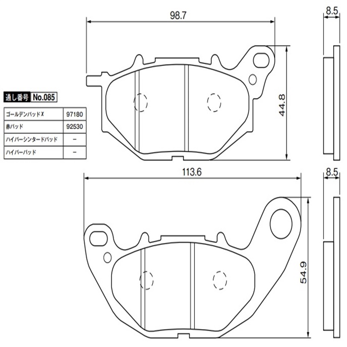 ゴールデンパッドχ No.085 MT-03 16-22 / YZF-R3 ABS 15-23 / YZF-R25 / ABS 15-23等