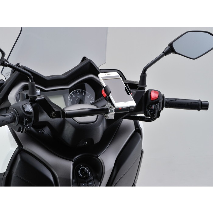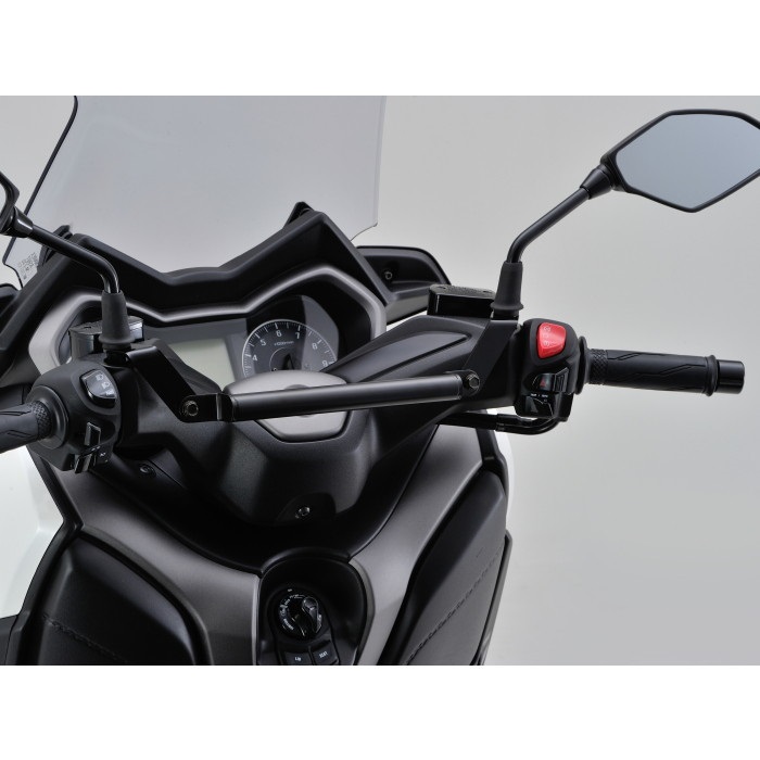 Φ22.2のパイプに様々なアイテムをマウントできる基本機能は変わらず、存在を主張しないブラックボディ&ステーを採用。