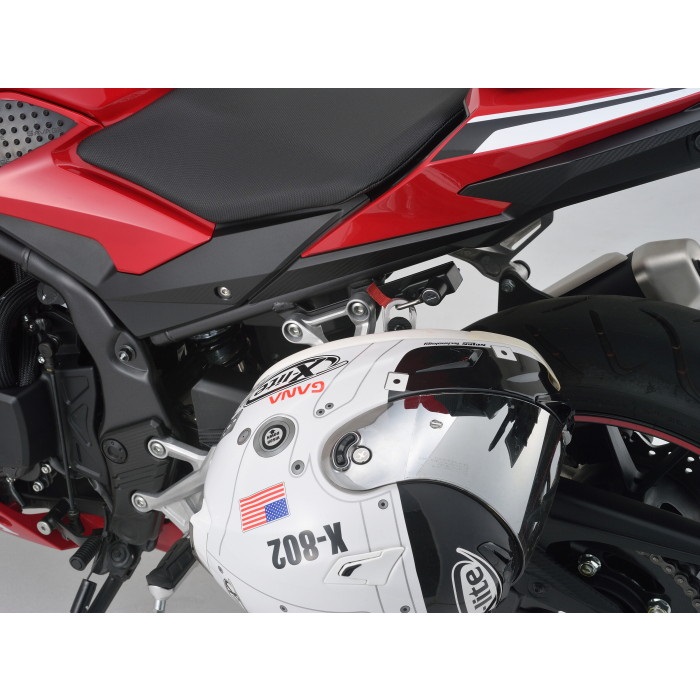 純正ライクな見た目で、車両の雰囲気を崩しません。ボルトオンで取り付け可能 (左タンデムステップ部に取り付け) 。カギは2本付属。