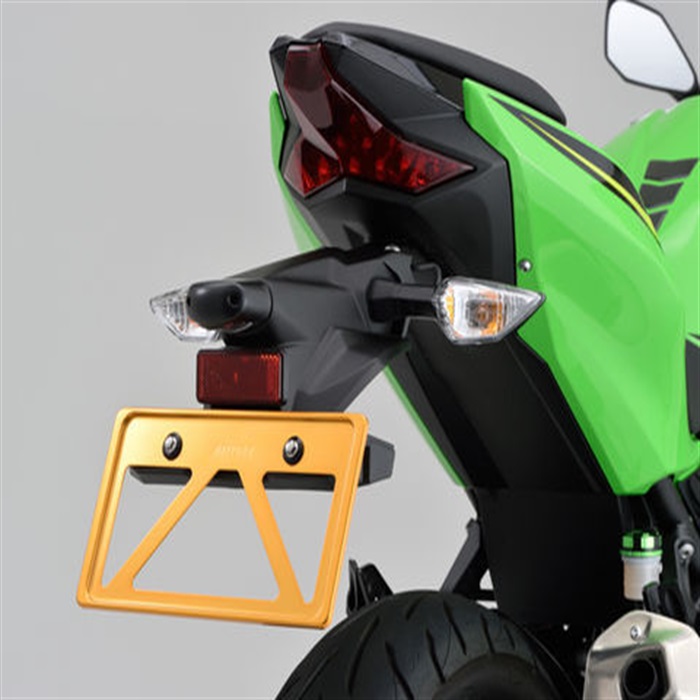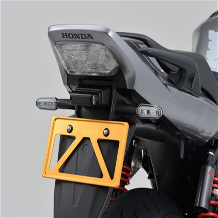 振動によるナンバープレートのひび割れや破損を予防します。1mm厚アルミ材を大胆に肉抜きすることで必要な強度を保ちつつ極限まで軽量化しました。