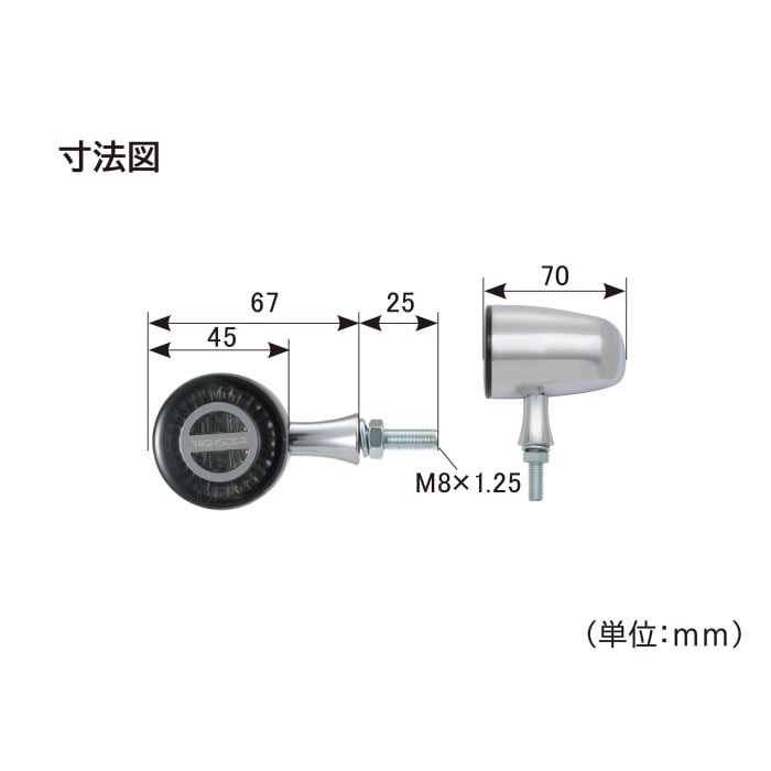 クラシカルで丸みのある形状が特徴の砲弾タイプLEDウインカー。