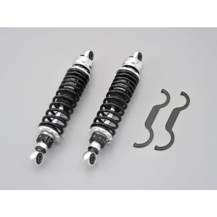 SR400/500全年式対応。従来品に対しスプリング特性を変更し、サポートスリーブを追加しました。エンド部はラバーブッシュを採用。スポーツ性と乗り心地を両立します。最大荷重を確保し2人乗りにも対応。