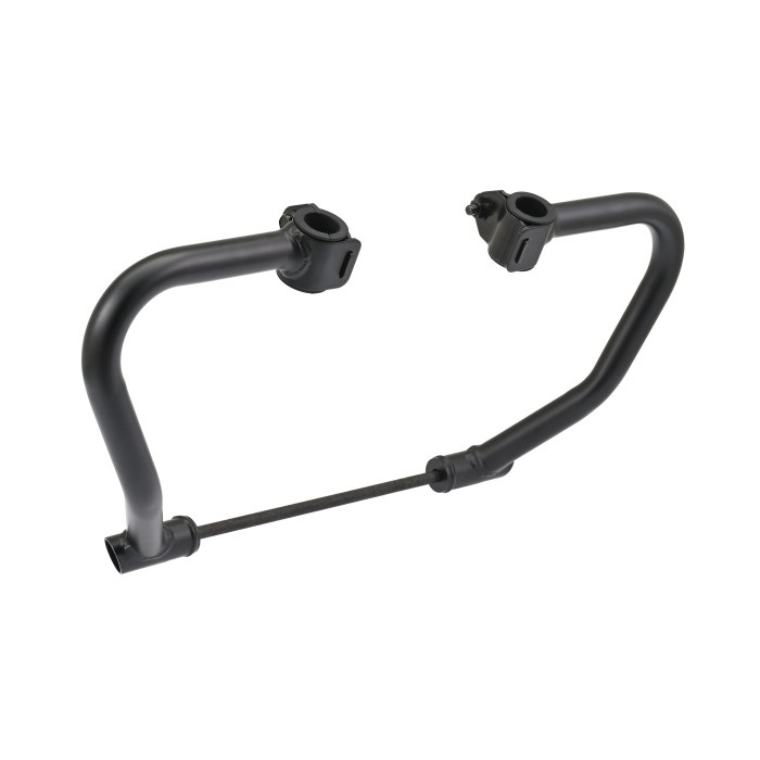 ゴムダンパー装備で、装着時にフレームに傷を与えない新設設計。ボルトオン装着可能なスチールパイプ製の強固なエンジンガードは、立ちゴケ等の軽度な転倒に対し、エンジンやカウルのダメージを軽減。ケース割れ等による走行不能を回避します。Φ25.4 (1インチ) はアメリカンのハンドルと同径なので、アクションカメラなどハンドルにクランプする用品の装着も可能。不必要に目立たないマットブラック塗装済み。