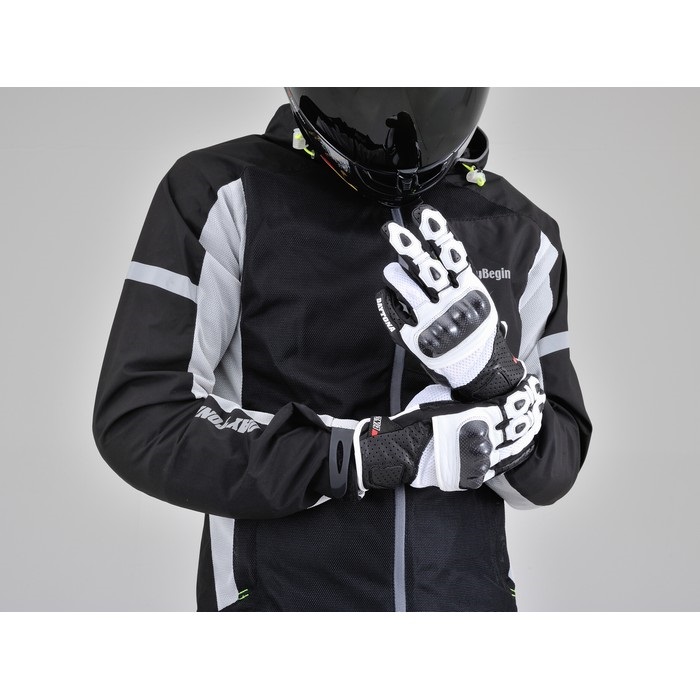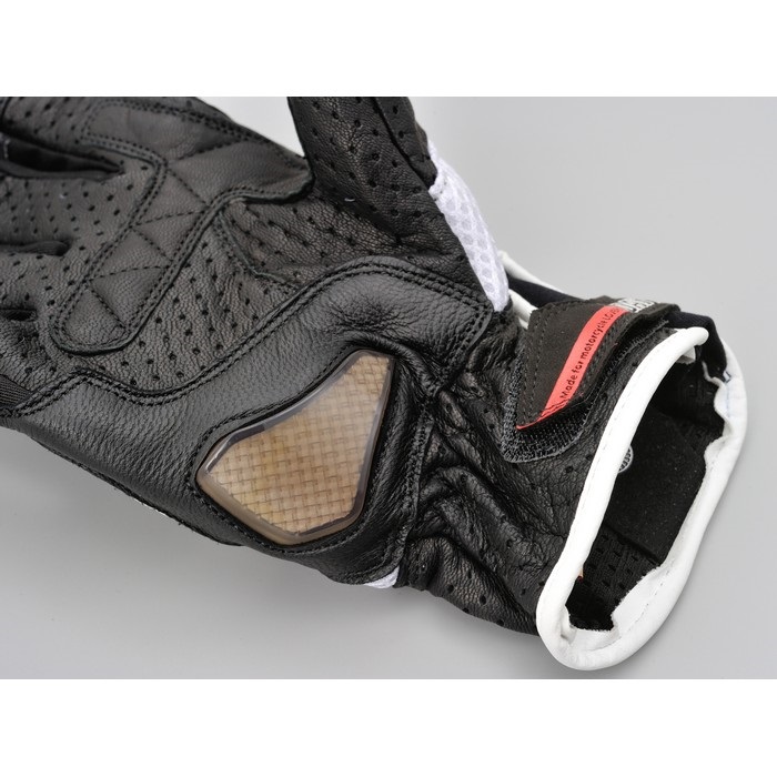 スポーツタイプグローブの夏用フラッグシップモデル。パンチング加工を施した本革とメッシュ生地を組み合わせ、高い通気性と安全性を両立。