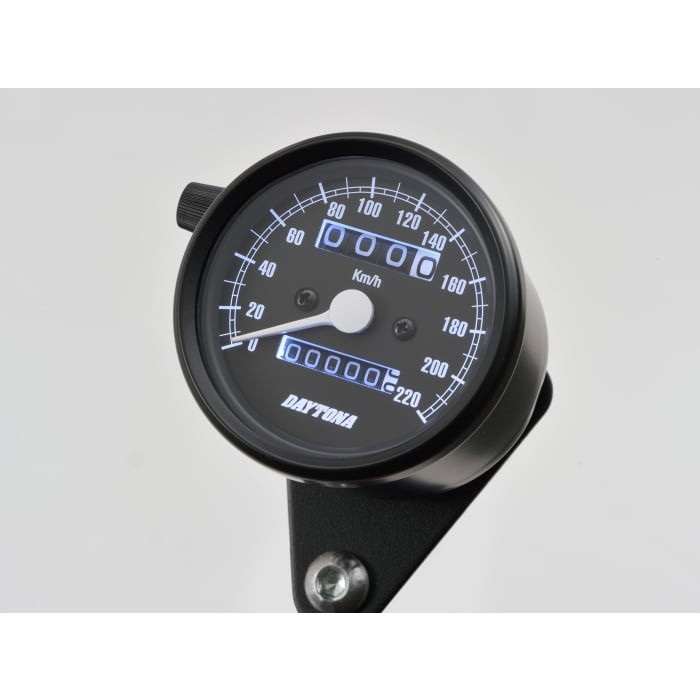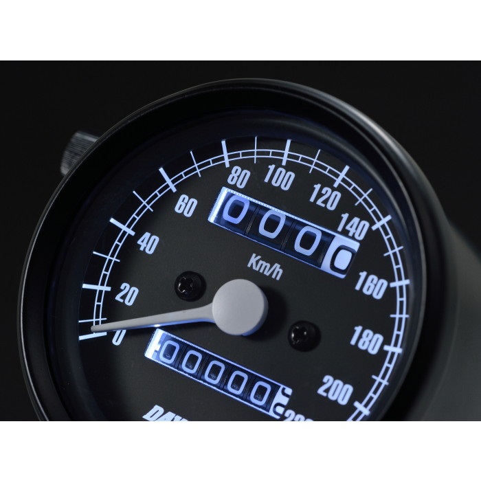 機械式スピードメーター Φ60 ホワイトLED照明 220km / h ブラックボディ