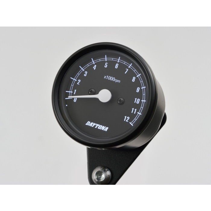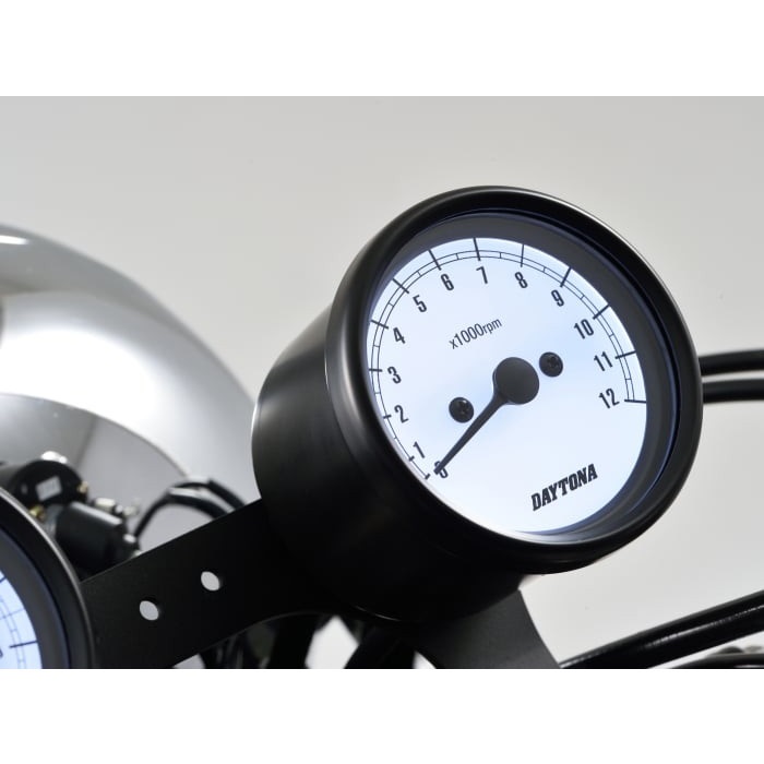 機械式タコメーター Φ60 ホワイトLED照明 12000rpm ブラックボディ