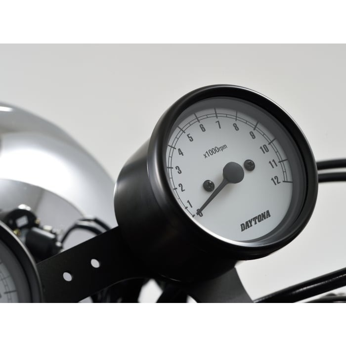 ※タコメーターはSR400などに採用されている「ギヤ比1:5」 (クランク5回転=タコメーターケーブル1回転) 」規格の純正機械式タコメーター (タコメーターケーブルを使用する車両) のみ適合。機械式タコメーターが標準装備されていない車両 (FTRやTWなど) はもちろん、ギヤ比が異なる車両には使用できません。