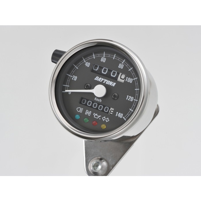 クラシカルなパネルデザインで140km/h表示のスピードメーター。