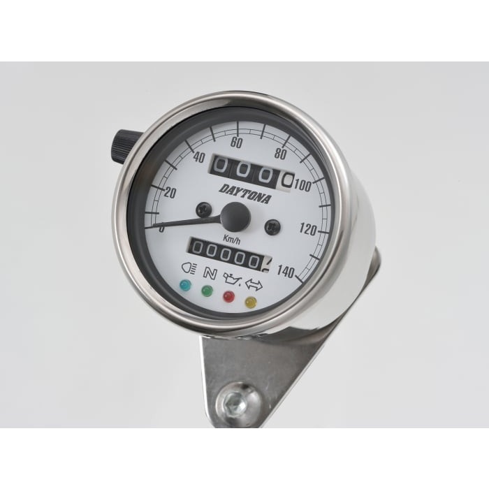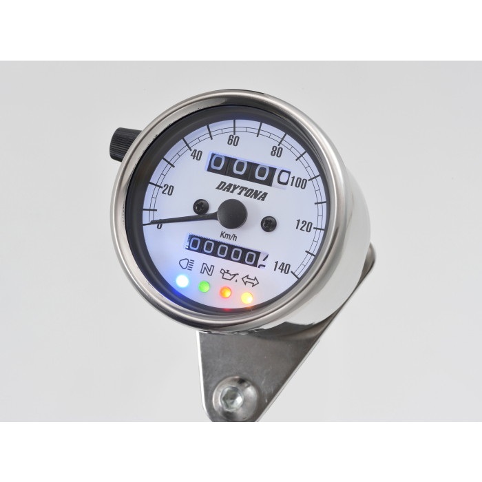 機械式スピードメーター (インジケーター付き) Φ60 ホワイトLED照明 140km / h ステンレスボディ