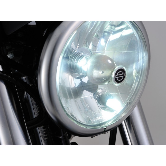 ハロゲンバルブ対比約半分の消費電力としながら、約 2 倍の明るさを実現 (Low ビーム時) するLEDヘッドランプバルブ。高輝度 LED 素子をハロゲンバルブのフィラメントと同位置に配置し照射精度を高め、Hi/Lowの切り替えにも瞬時に対応。白さが際立つ6500ケルビン。 (消費電力:Hi/Low約25W相当)