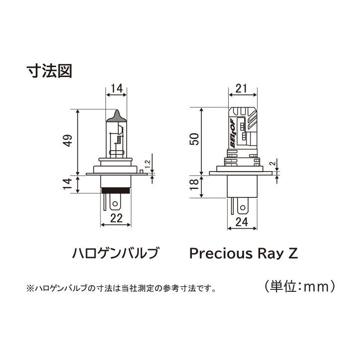 ※購入前に取り付け車種とバルブ形状が一致していること、寸法図を参考にヘッドライトケース内に取付スペースが確保されていることをよくご確認ください。純正バルブシェード採用車はシェードまでの距離の確認も必要です。車両によっては純正バルブシェードの取り外しが必要です