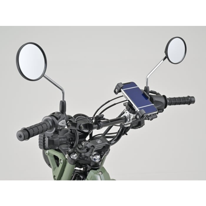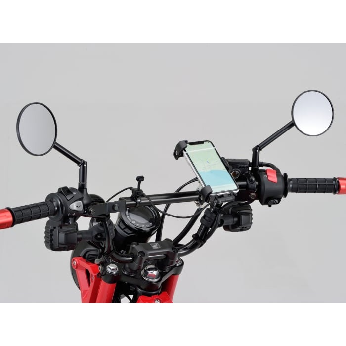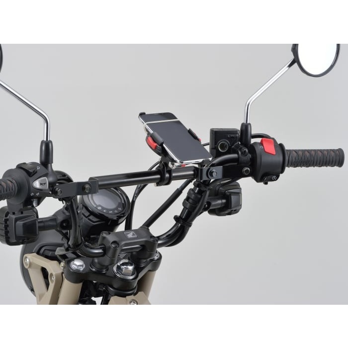 Φ22.2のパイプに様々なアイテムをマウントできる基本機能は変わらず、存在を主張しないブラックボディ&ステーを採用。