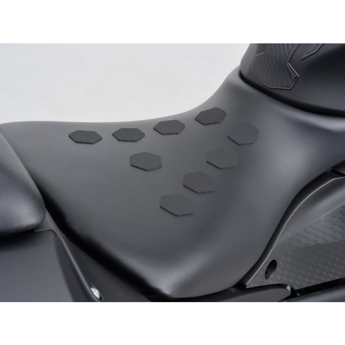 ライディング時にお尻が滑ってしまい困っている方にオススメ。ステッチパターンでグリップ力が高いシートがライディング時の滑りを抑えます。また、タンデムシートに貼ることで、シートバッグの滑りも抑え、バッグをずれにくくします。4つのデザインとプレーンタイプの5種類を設定。ちょっとしたシートの破れを補修するときにもピッタリです。
