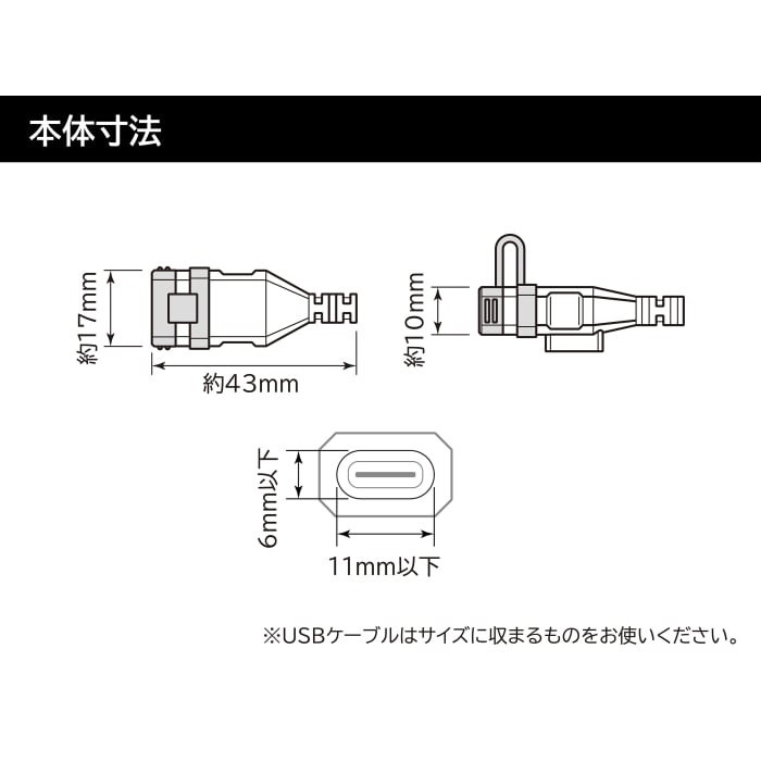 ※USBケーブルは、差込部 縦6×横11(mm)に収まるものをお使いください。