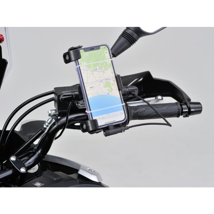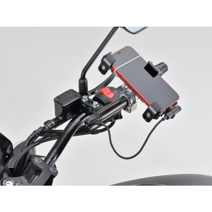 好評のマルチバーホルダーにUSB Type-Cの電源を組み込みました。ホルダースペースを有効活用できます。PREMIUM ZONE バーエンドイメージのスタイリッシュなデザイン。USB PD 3.0で急速充電に対応。回転式のキャップでコネクターを水やほこりからガードします。