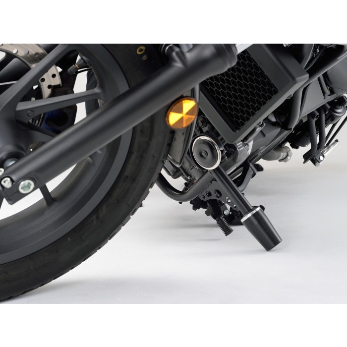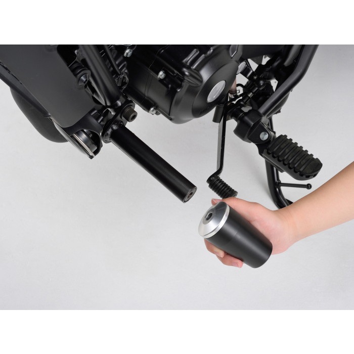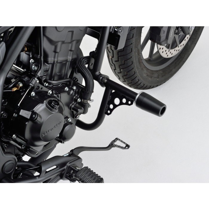 エクストリームバイクをイメージしたプロテクター付きのエンジンガード。エンジンガードシリーズの車体保護性能やハイウェイペグ代わりとなる機能はそのまま、ビジュアル要素を強めました。立ちゴケ等の軽度な転倒に対し、エンジンやカウル等のダメージを軽減します。付属のプロテクターは軽度なダメージを吸収。摩耗時には交換も可能です。