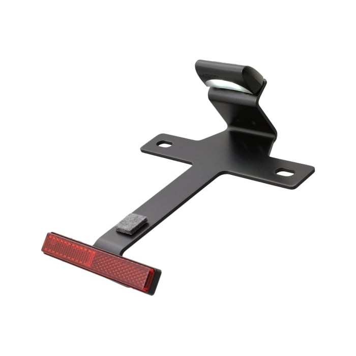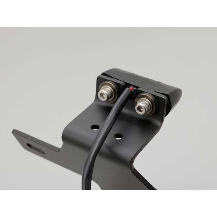 新保安基準対応(ナンバー角度40度)のLEDライセンスランプとステーセット。Eマーク取得の新設計LEDランプ付属。