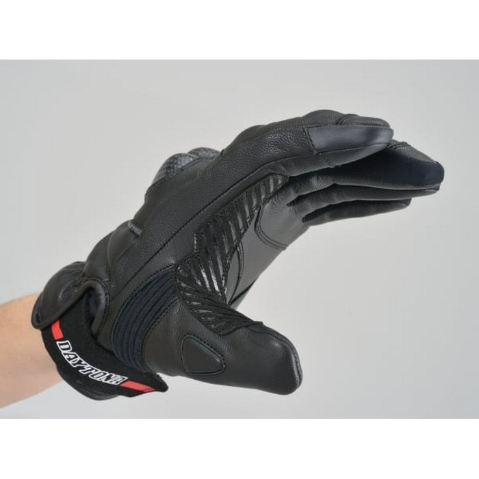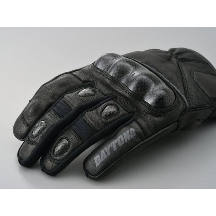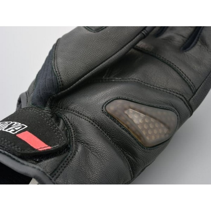 各所にプロテクターを装備し、多面に本革を使用することで安全性を確保したスポーティなグローブ。ショート丈でツーリングに最適なモデル。ナックルプロテクターはフローティング構造を採用し、指また部にストレッチ素材を採用。ウインターグローブの操作性の悪さを低減し、長時間のライディングでも握力低減を防ぎます。防水防風フィルム入り。