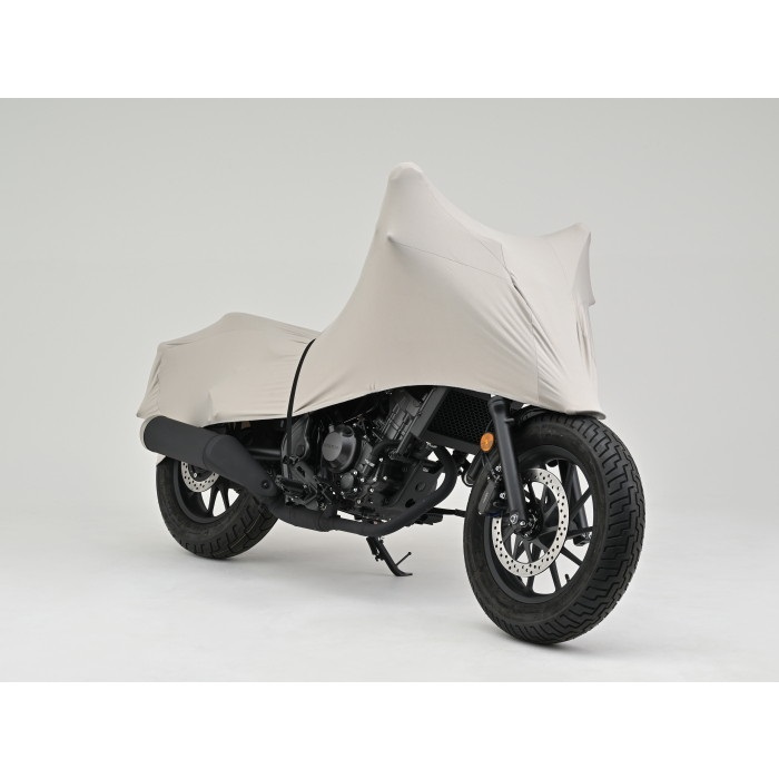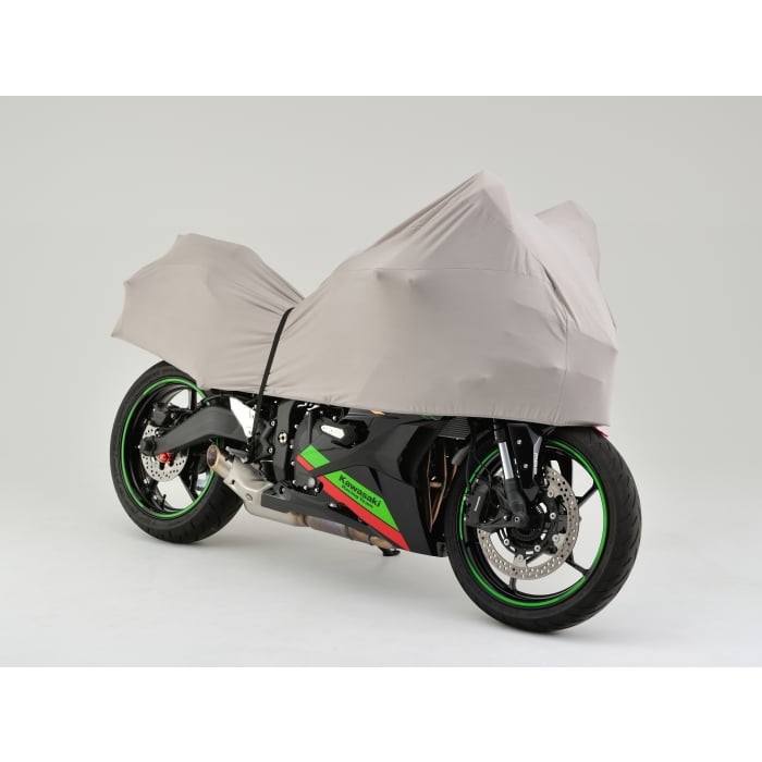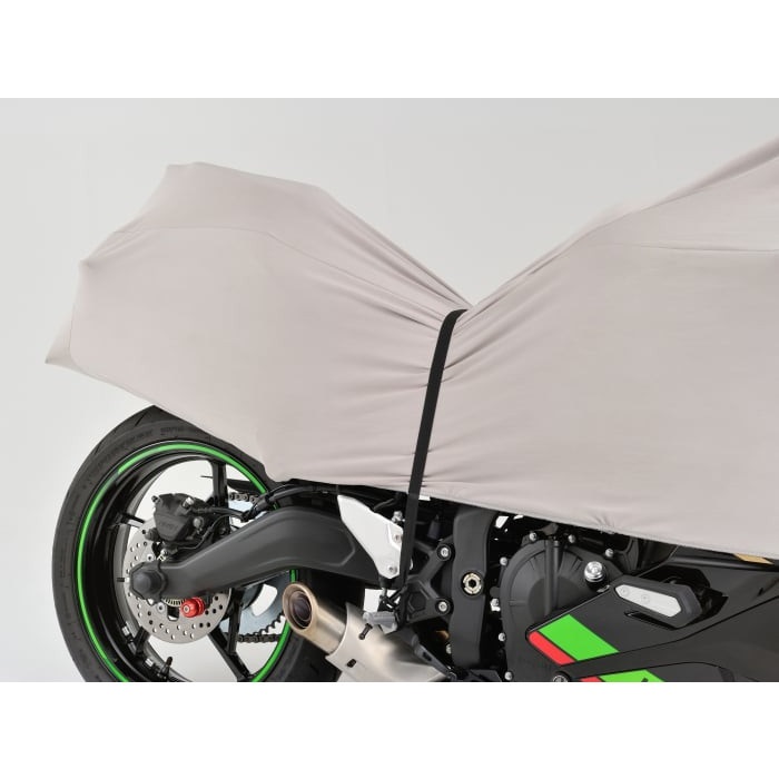 ガレージ・屋内での保管時や、屋外用バイクカバーのインナーに使用することで、屋内保管時にありがちなほこりの蓄積や、ガレージ内での傷つきを防止します。大切なバイクを傷やほこり等から守る裏起毛の生地は、ストレッチ性が高いので車体に優しくフィットします。ハーフ形状なので、地面やタイヤ、チェーン等、汚れる原因となる部分と接触しません。
