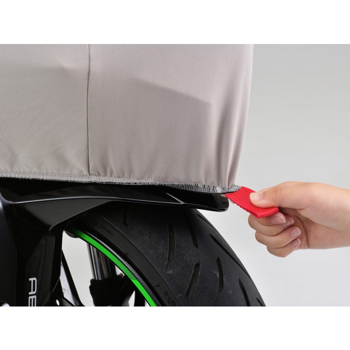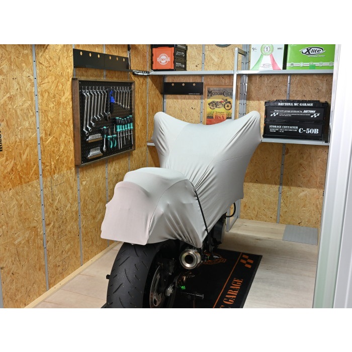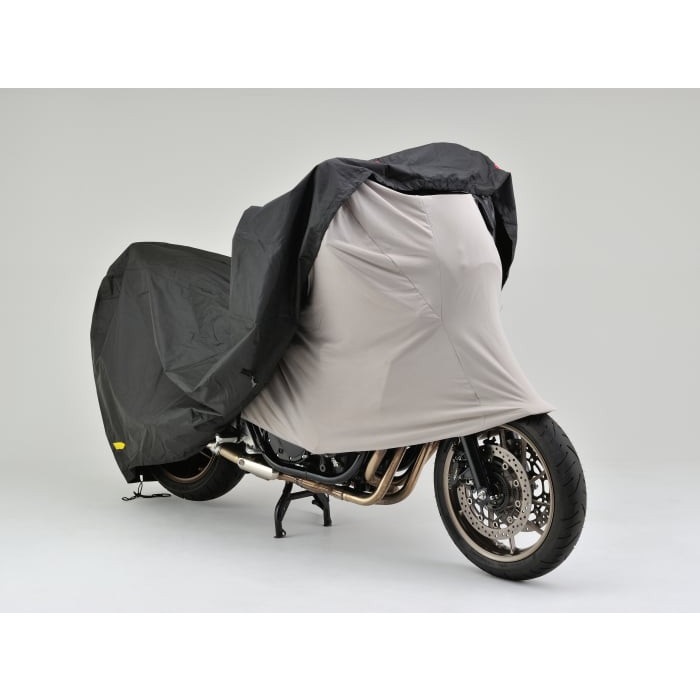 ガレージ・屋内での保管時や、屋外用バイクカバーのインナーに使用することで、屋内保管時にありがちなほこりの蓄積や、ガレージ内での傷つきを防止します。大切なバイクを傷やほこり等から守る裏起毛の生地は、ストレッチ性が高いので車体に優しくフィットします。ハーフ形状なので、地面やタイヤ、チェーン等、汚れる原因となる部分と接触しません。