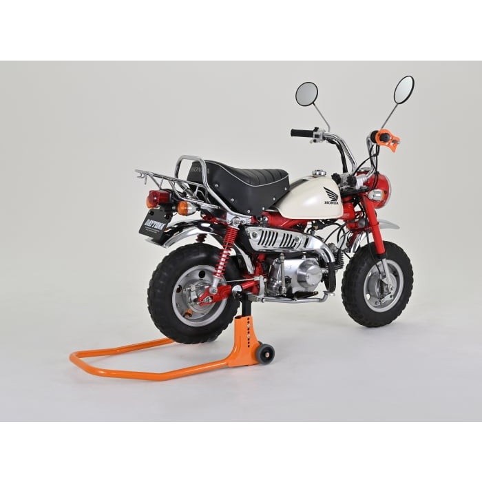 チェーン調整など、ミニバイクのメンテナンスには欠かせないリアスタンド。