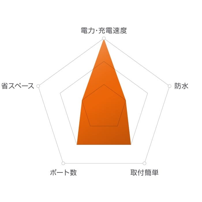 急速充電規格対応で1ポートあたり最大18W(5V/3A、9V/2A、12V/1.5A)出力可能。