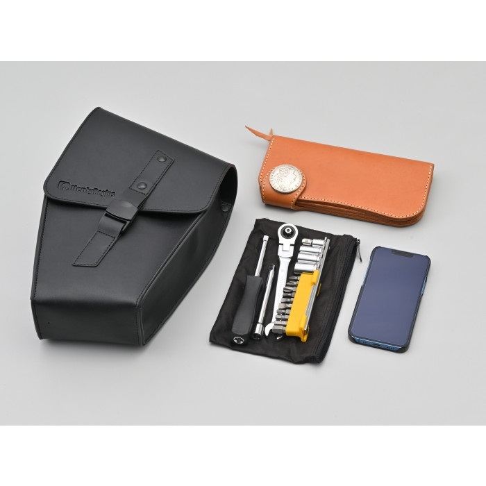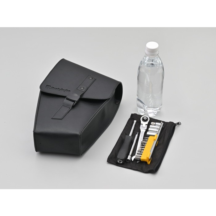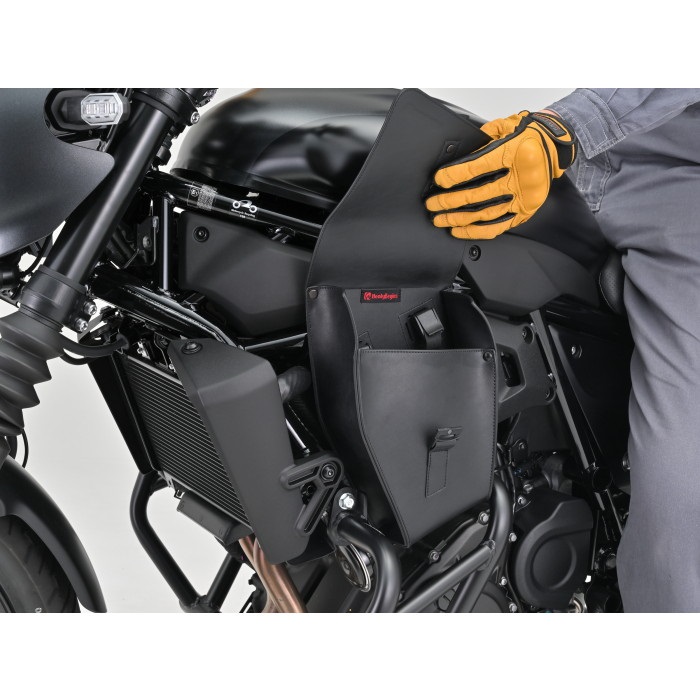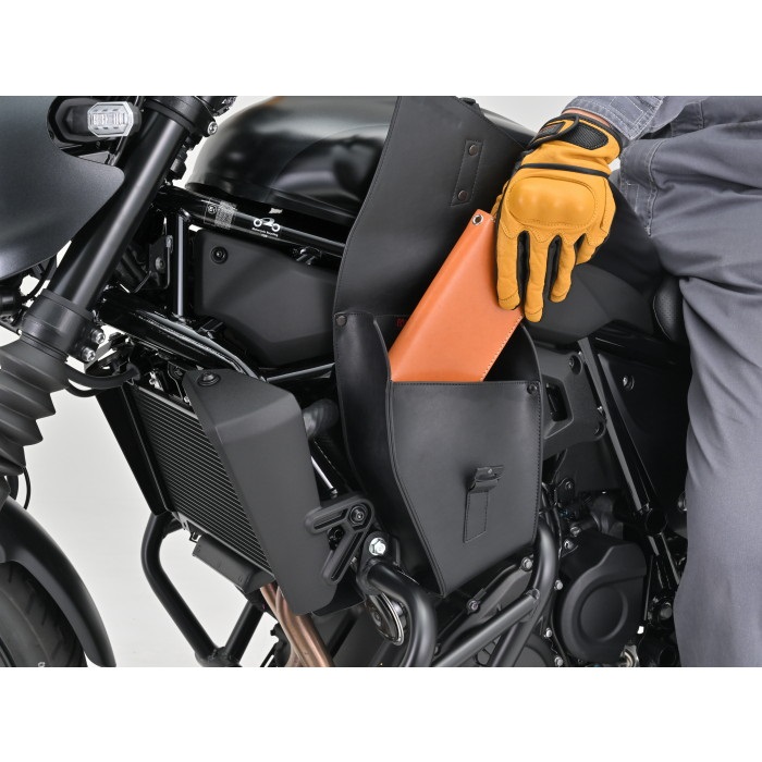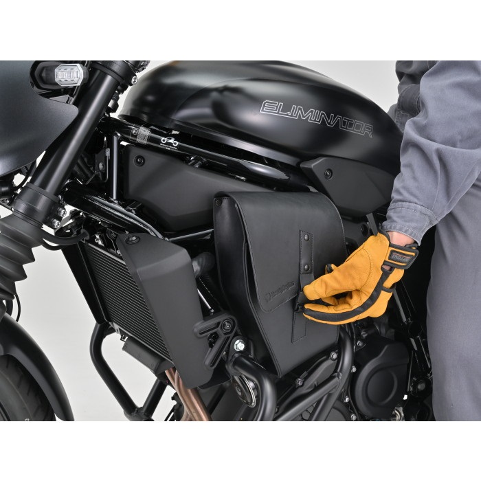 ベルトで固定するだけなので取り付けが簡単なフレームバッグ。ELIMINATOR専用設計なので車体のイメージを崩さず、ボリューム感が出るのでドレスアップにも一役買います。フラップにはグローブをしたまま片手で開閉できるマグネット式 (ワンタッチ) バックルを採用。財布や車載工具などの収納に便利です。デイトナ製パイプエンジンガードとの同時装着可能。組み合わせ装着したときのバランスにも配慮しました。