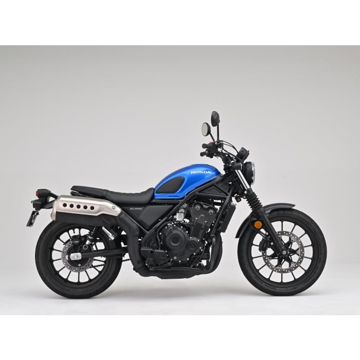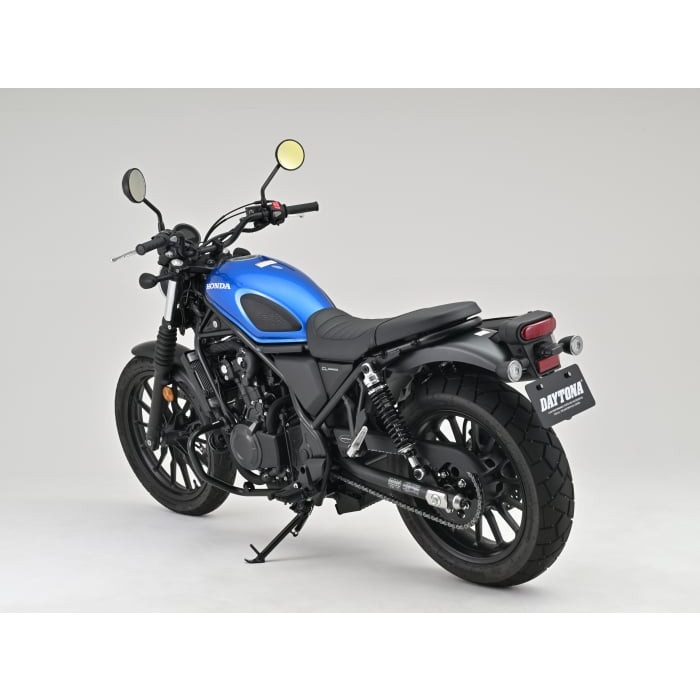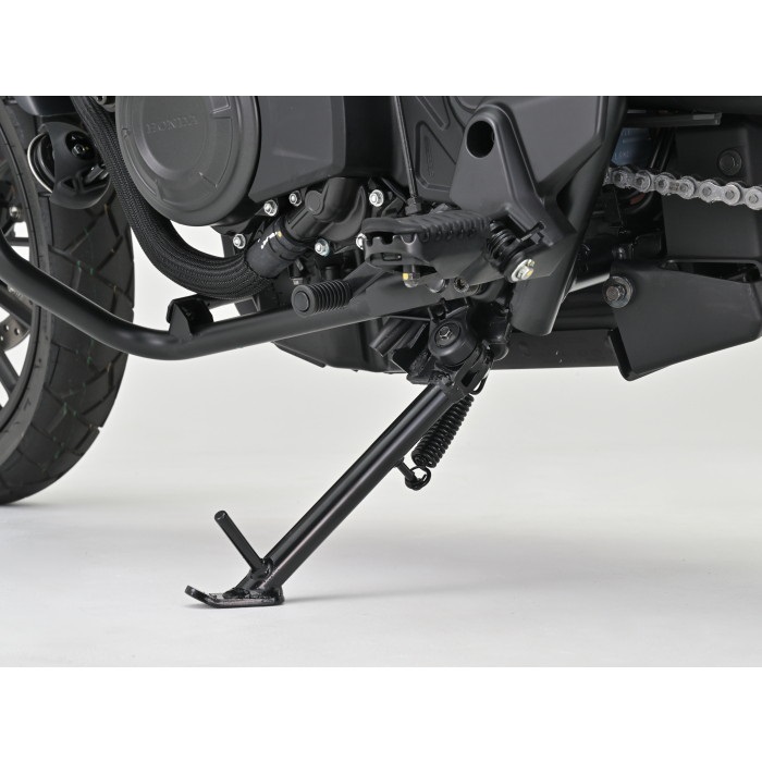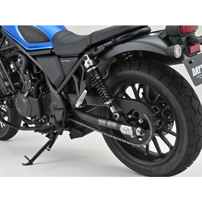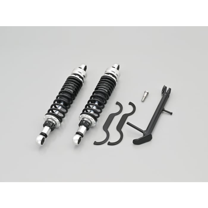 シート高を約28~42mm下げて足付きを改善。ローダウンながら優れた乗り心地、コーナーリング性能、ギャップ走破性を発揮。アルミ製のリアショックはCL500専用のバネレートを採用。専用ショートサイドスタンドが付属するので安定した駐車が可能です。アジャスタブルリアショックとショートサイドスタンド、スタンド取り付け用段付きボルトのセット。