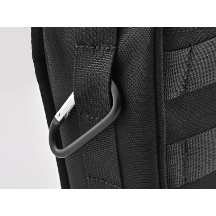 バッグ全周に巡らせたパルステープのおかげで取り付け自由度が高く、装着は付属の固定ベルトを通すだけなので簡単。