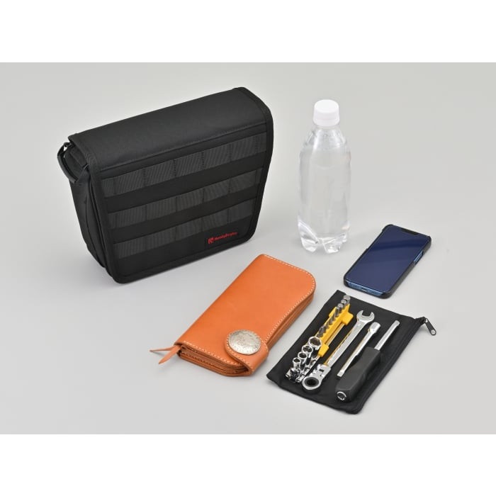 ハンドルやフレーム、グラブバー等に取付ける小さなバッグ。スマホや、財布、ペットボトル、車載工具などの小物入れに最適です。