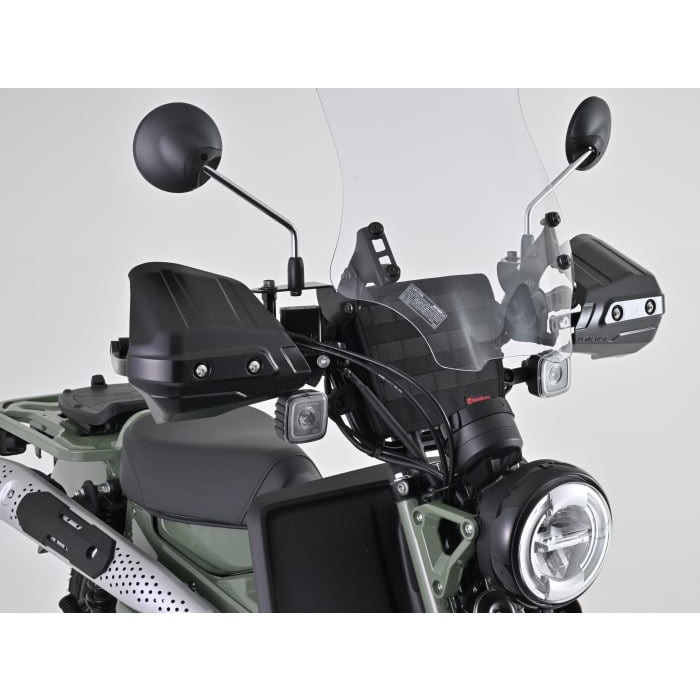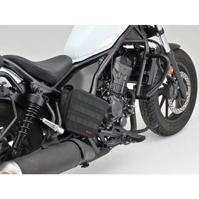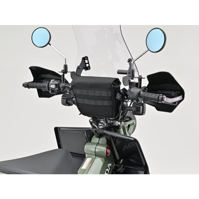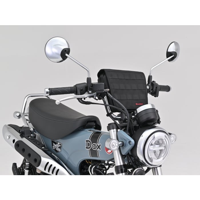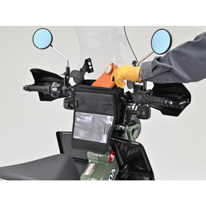 生地にはタフな「600D CORDURA」を採用しました。ハンドルやサイドカバー付近の装着にベストな2Lサイズ。ハンターカブやDAX125などアップハンに最適です。
