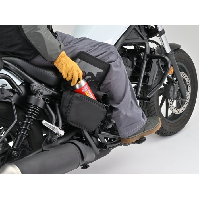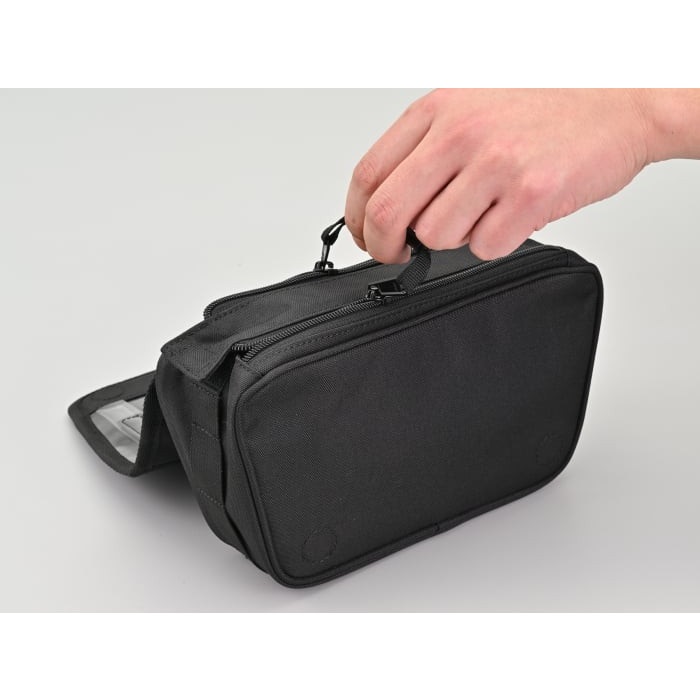 ハンドルやフレーム、グラブバー等に取付ける小さなバッグ。スマホや、財布、ペットボトル、車載工具などの小物入れに最適です。