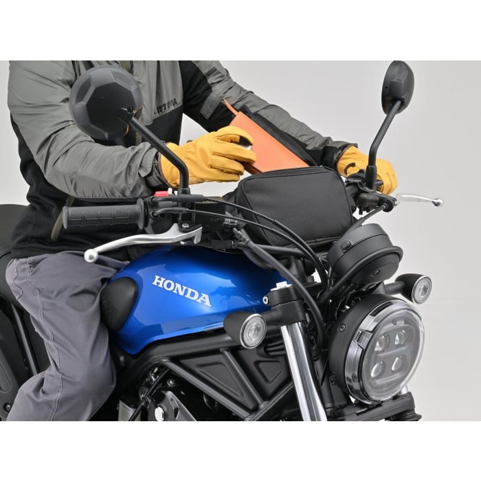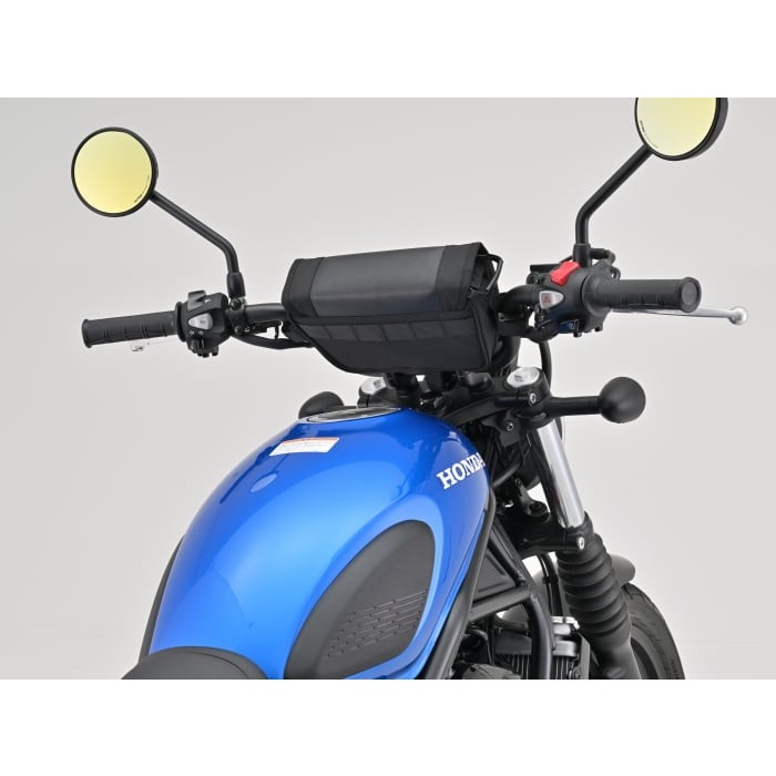 生地にはタフな「600D CORDURA」を採用しました。ハンドルやサイドカバー付近の装着にベストな1.5Lサイズ。ELIMINATOR400やCL500/250などローハンドル車に最適です。