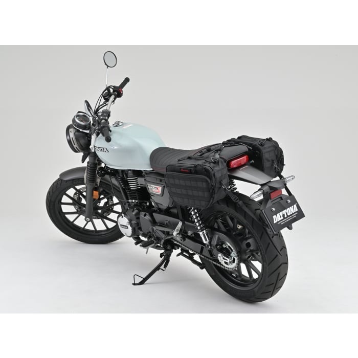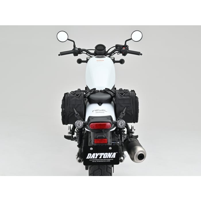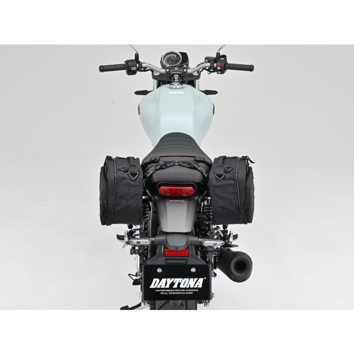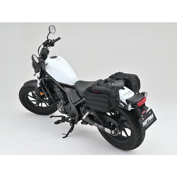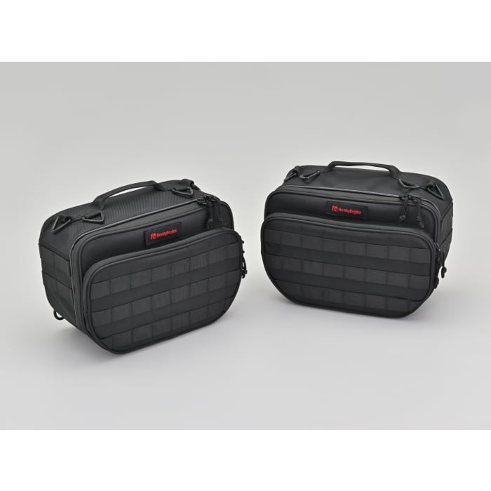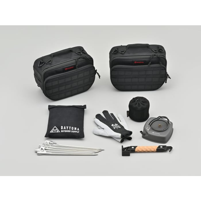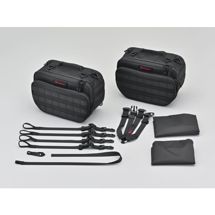コンパクトに収まる9L&9L。キャンプギアやレインウエアなどの収納に最適です。両側9Lなので、マフラーにも対応しやすいサイズ。