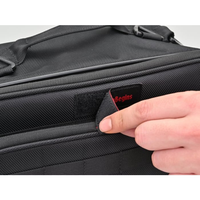持ち運びに便利なハンドル付きで、パルステープに別売りのシステムポーチを取り付けすることで、自分好みにカスタマイズ可能です。正面のタグは取り外しできます。