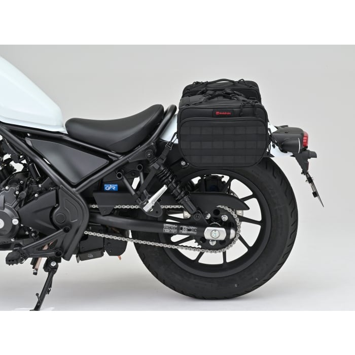サイドバッグサポート不要の振り分けサイドバッグ。車体にフィットするので、バッグが大きく張り出しません。新開発のサイドバッグ専用イージーリングベルトで、素早く確実に固定できます。