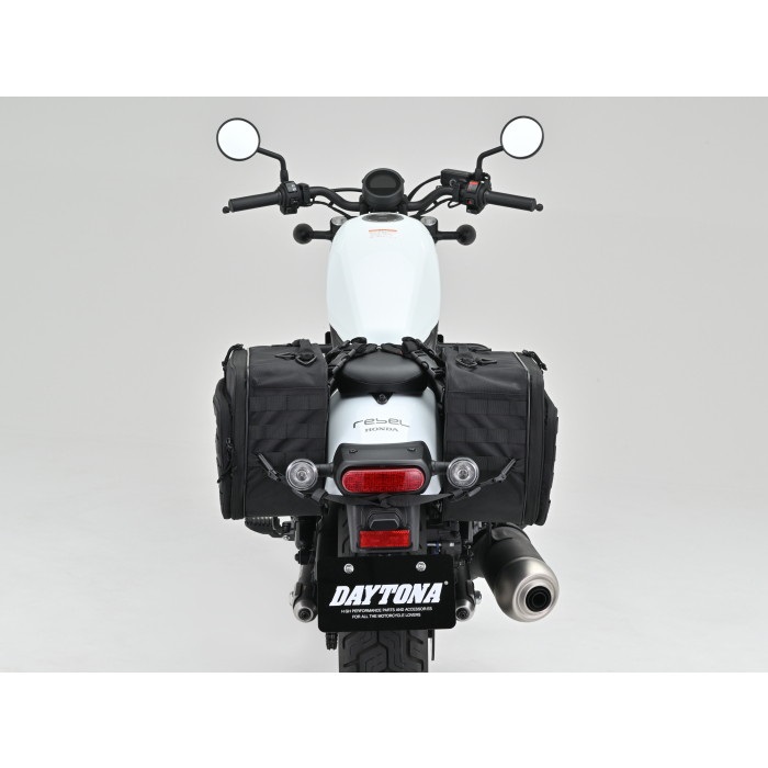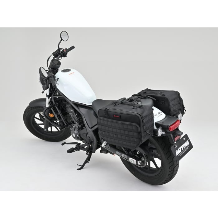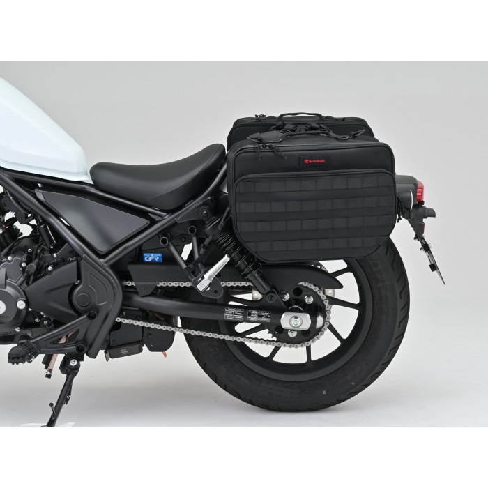サイドバッグサポート不要の振り分けサイドバッグ。車体にフィットするので、バッグが大きく張り出しません。新開発のサイドバッグ専用イージーリングベルトで、素早く確実に固定できます。