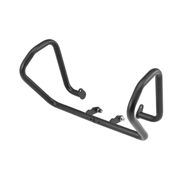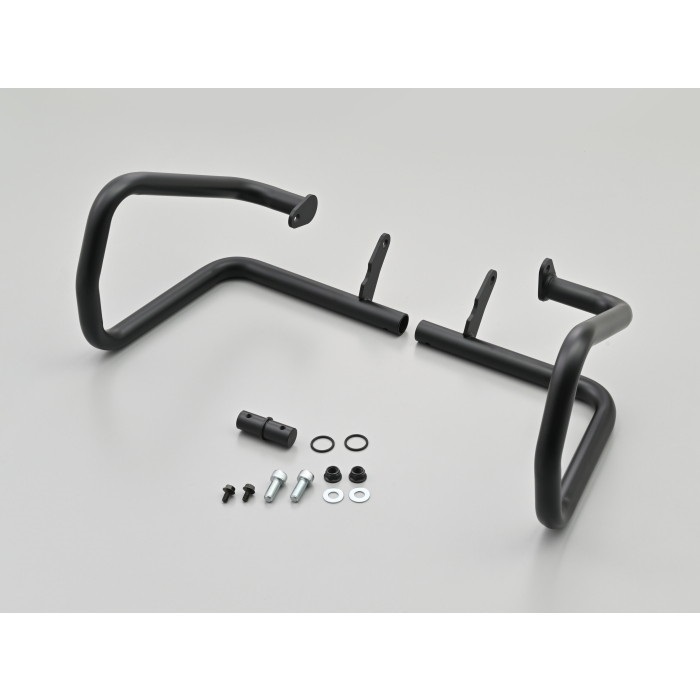 フレームとの接続部はゴムダンパー採用 (一部車種のみ) で、転倒時にフレームを傷つけず、大切な愛車の価値を守ります。Φ25.4のメインパイプを採用することで、ドライブレコーダーやアクションカメラ等のハンドルクランプ取り付けアクセサリーが装着可能。さらにアイディア次第では様々な機能を追加することができます。最新の排ガス規制に対応するためマフラーの取り回しが変更された23以降のモデルに合わせてステー形状を変更し、全年式に対応しました。