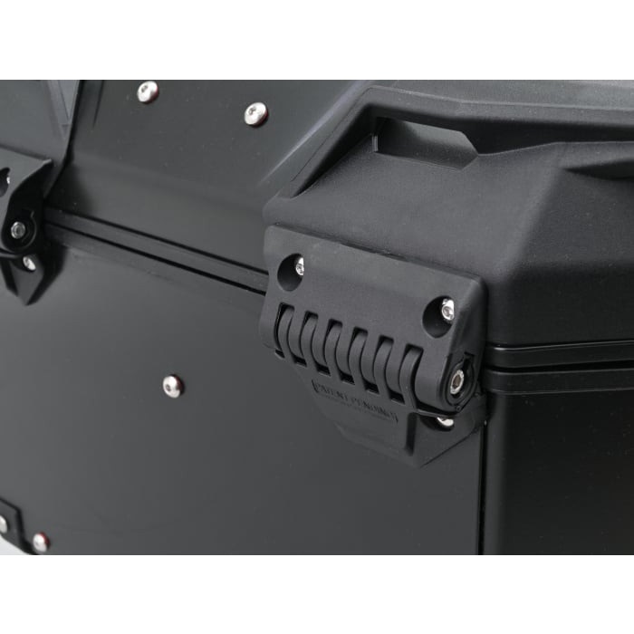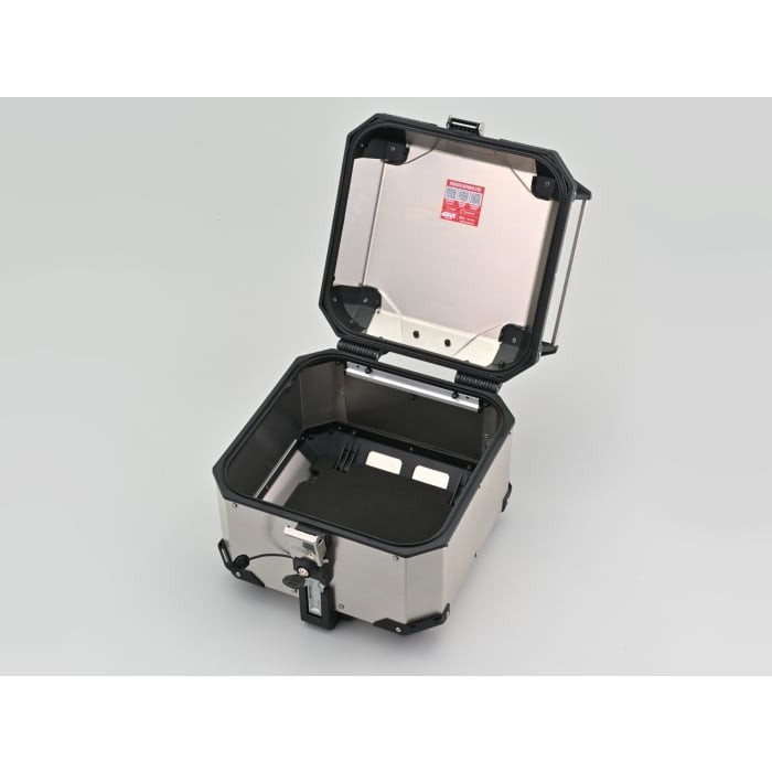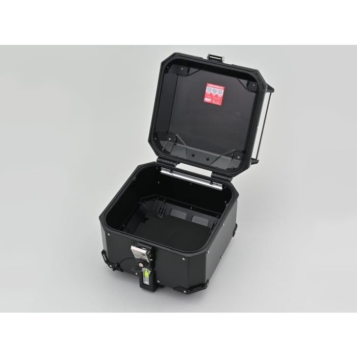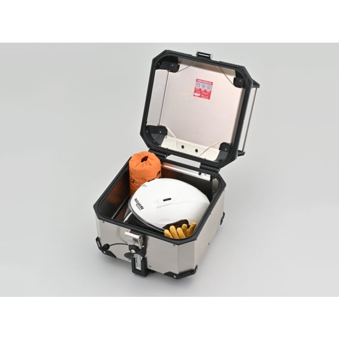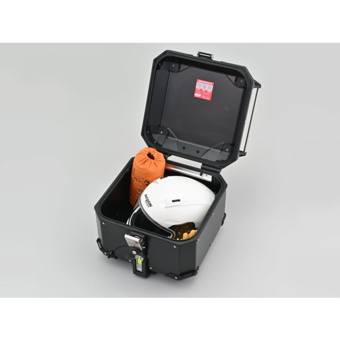 上蓋開口調整システム(ARHS)により上蓋の開口アングルを調整可能。ヘルメット1個収納。モノキータイプのアルミトップケース。セキュリティーキー付属。