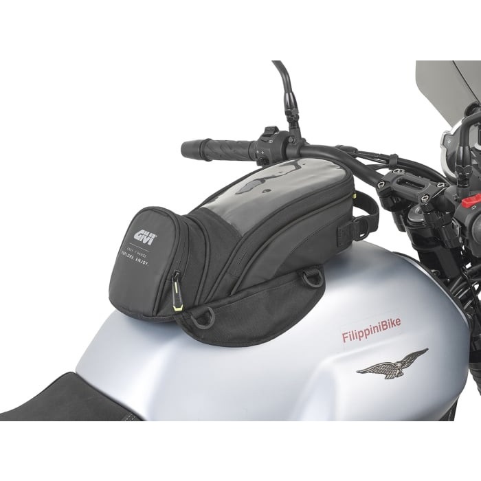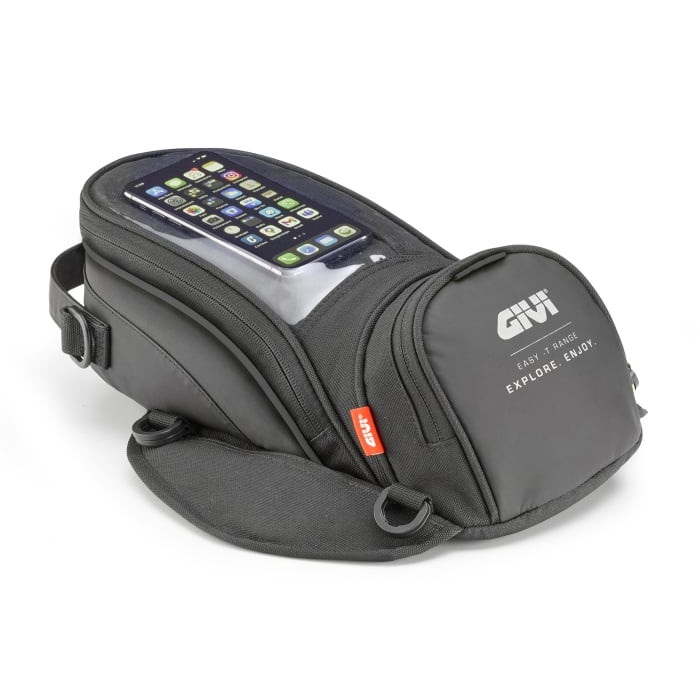 ライディングの邪魔にならないコンパクトなマグネットタイプのタンクバッグ。スマートフォン用クリアーポケット装備。iPhoneなら、最大の15 Pro Maxサイズまで収納可能。身の回りの物を入れるのに最適なサイズです。