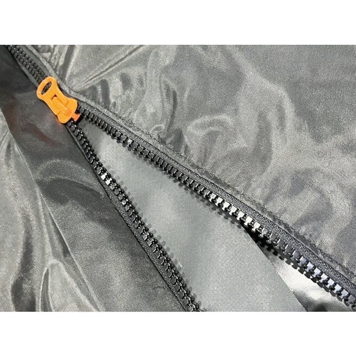 オリジナル裁断パターンと、縫い目のシーム処理で水の浸入を抑止。ファスナー式なので着脱が簡単スピーディーに行えます。