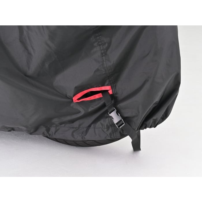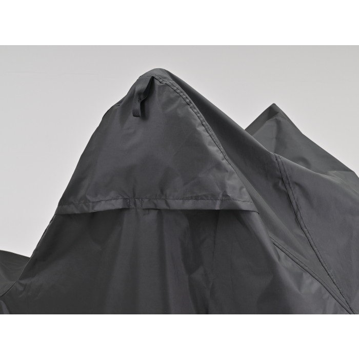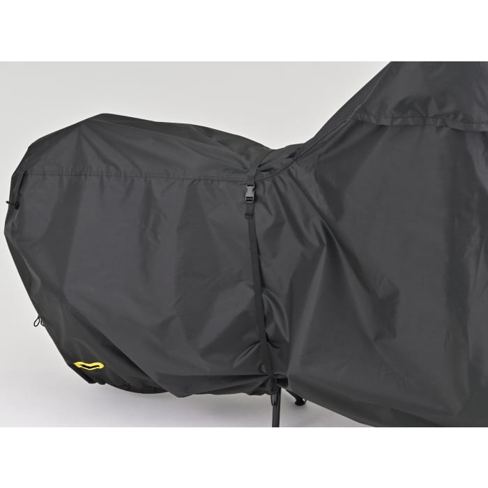 黒い繊維だからこそ実現できた、雨に打ち勝つ高耐久・耐水性の特殊素材生地を新たに開発。脅威の耐水圧20000mm (耐水圧:一般的な傘が500mm。一般的なレインウエアが10000mm) の生地を使用した雨に強いバイクカバー。
