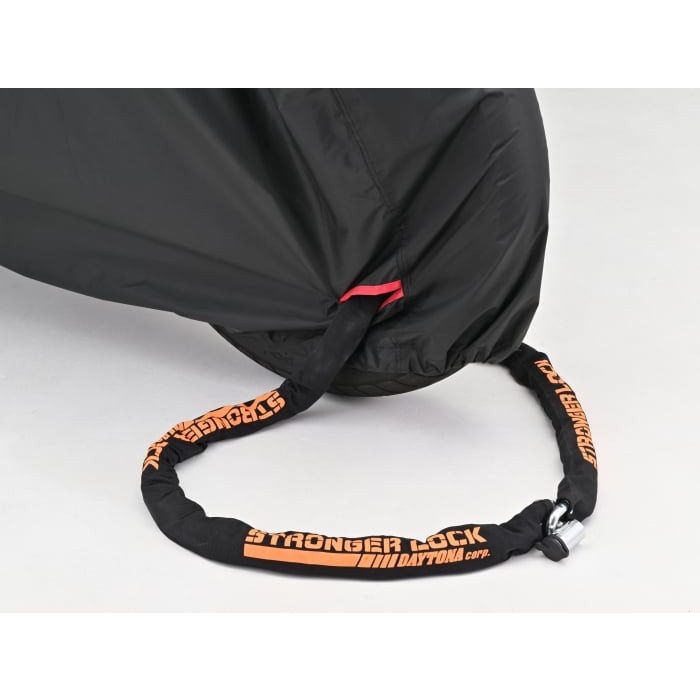 前後に大型ロック用チェーンホール付き。わざわざカバーをめくってチェーンロックをする必要がありません。