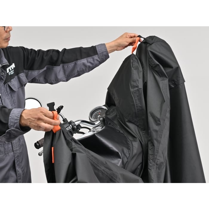 ※カバーを被せるときは、エンジンやマフラーなどの熱が十分に冷めていることを確認した上で被せてください。
