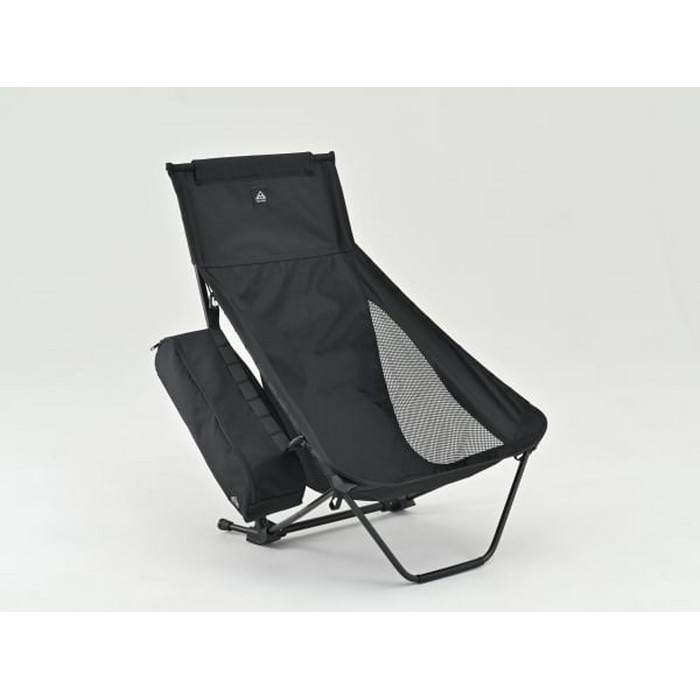 背の低いテント内でも頭が天井にあたりにくく、窮屈さを感じにくいのも特徴です。ロータイプなので、あぐらをかいたり足を伸ばしたり、自由な姿勢で過ごせます。収納袋はサイドポケットとして活用でき、小物を手元に置くことも可能。