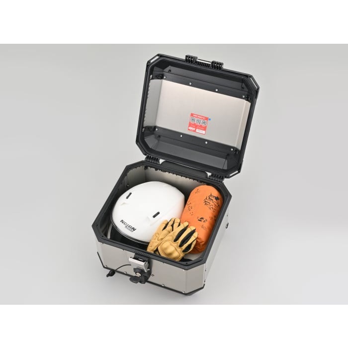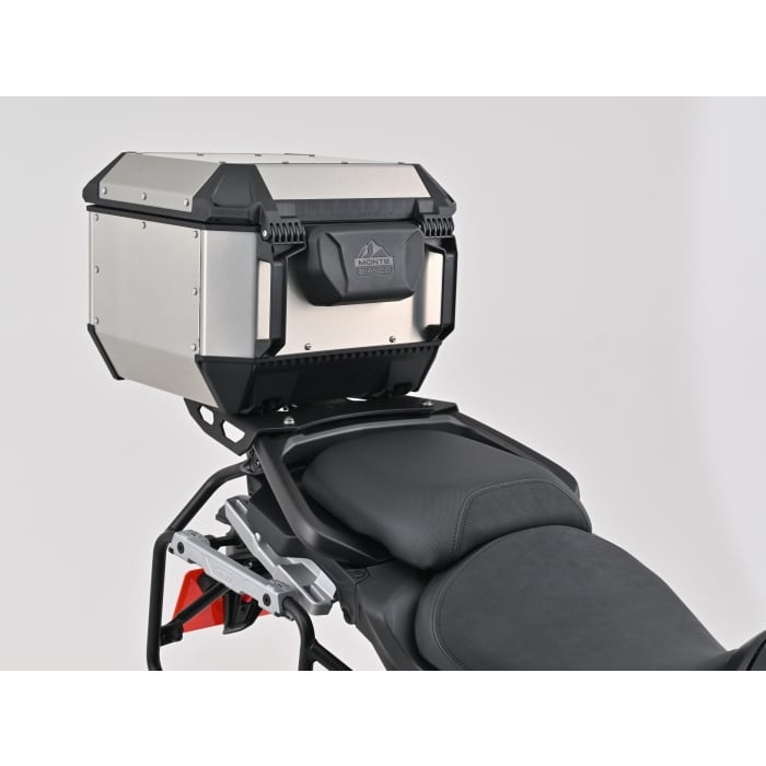 ケース外部のノブを回すことで簡単にベースから脱着できる、GIVI独自の「WIRELEASE」システム採用。上フタのベルトループを使用して、シートバッグなどを積載できます。ケース背面には持ち運びに便利なハンドル付き。