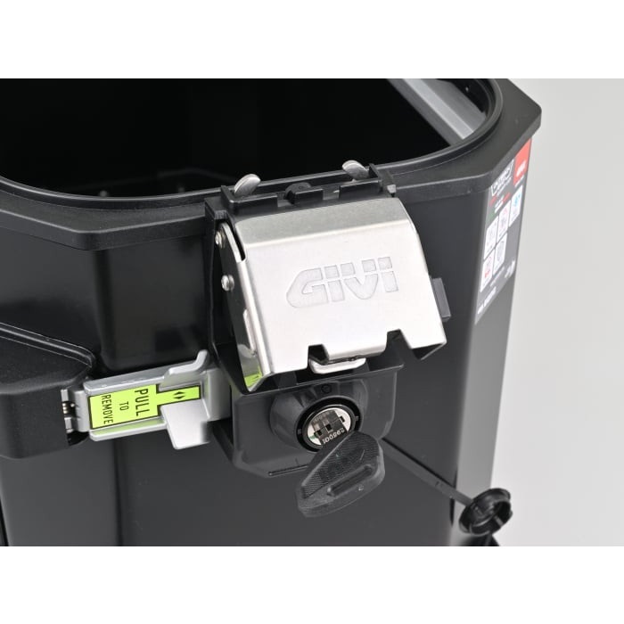 上フタを取り外せば、ケースからはみ出る大きな荷物も積載可能です。最新作の「EVO SMART」では、前作「EVO」で採用された大型の荷掛けフックやARHS(上フタ開口調整システム)を踏襲のうえ、トリプル装着時など、同じ鍵への交換が簡単な「スマートセキュリティロック」を新採用。キーを抜いた状態でフタの開閉ができる機能も追加されました。